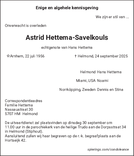 Bekijk of download de rouwkaart van Astrid Hettema-Savelkouls.