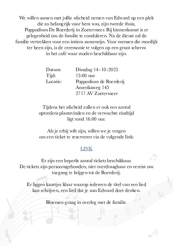 Bekijk of download de rouwkaart van Edward Reekers.