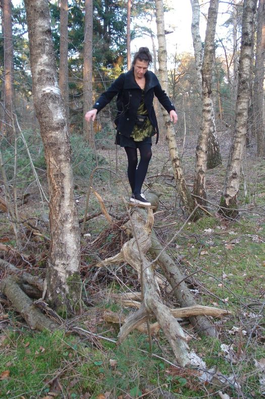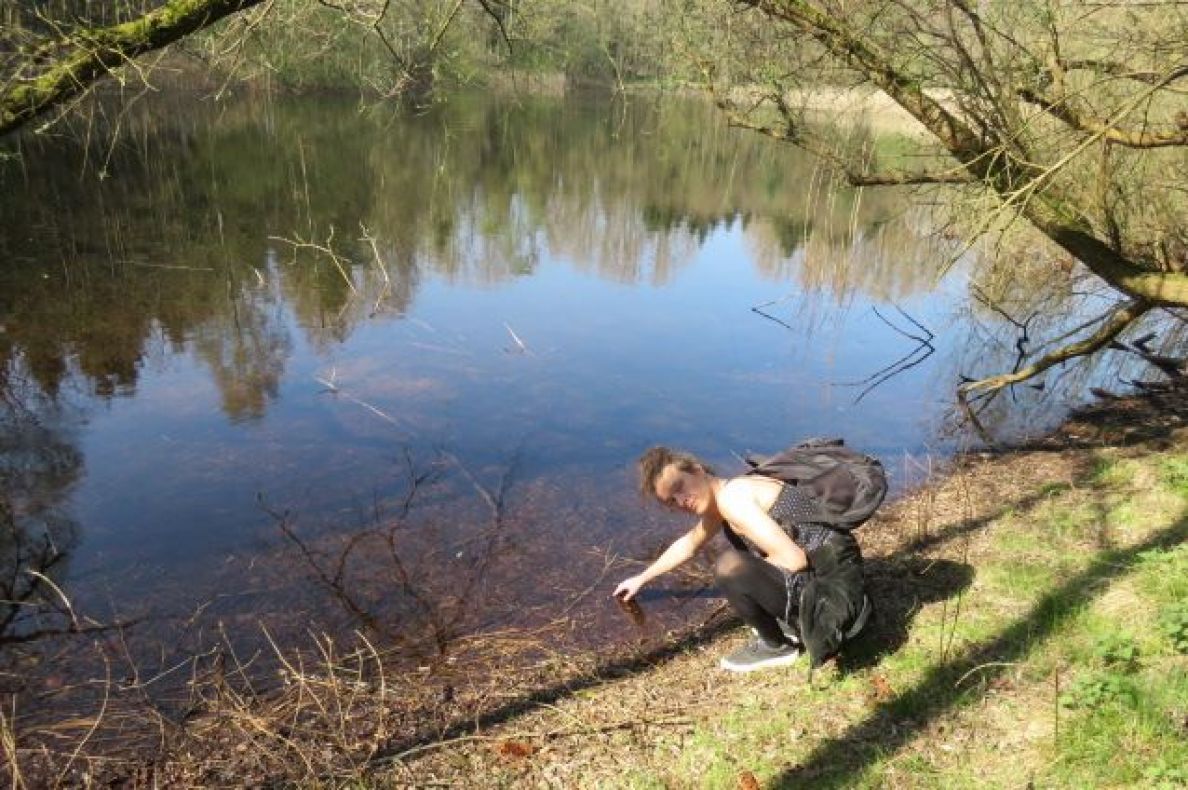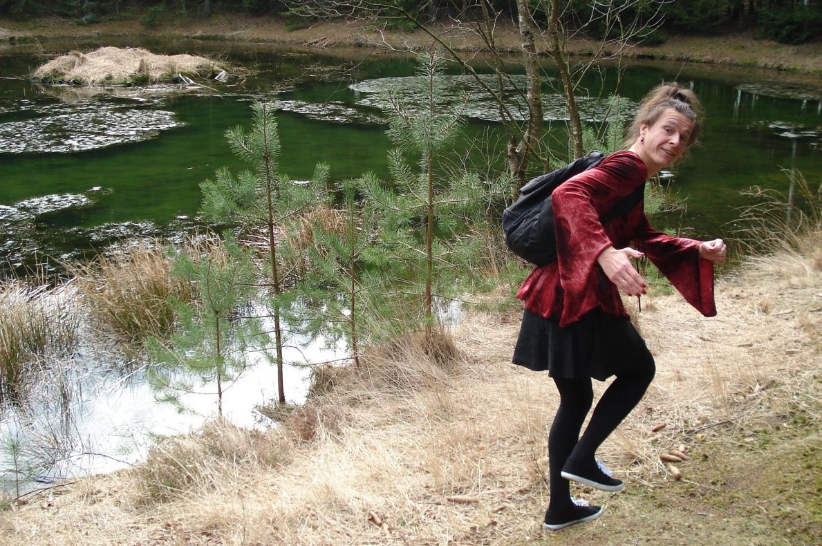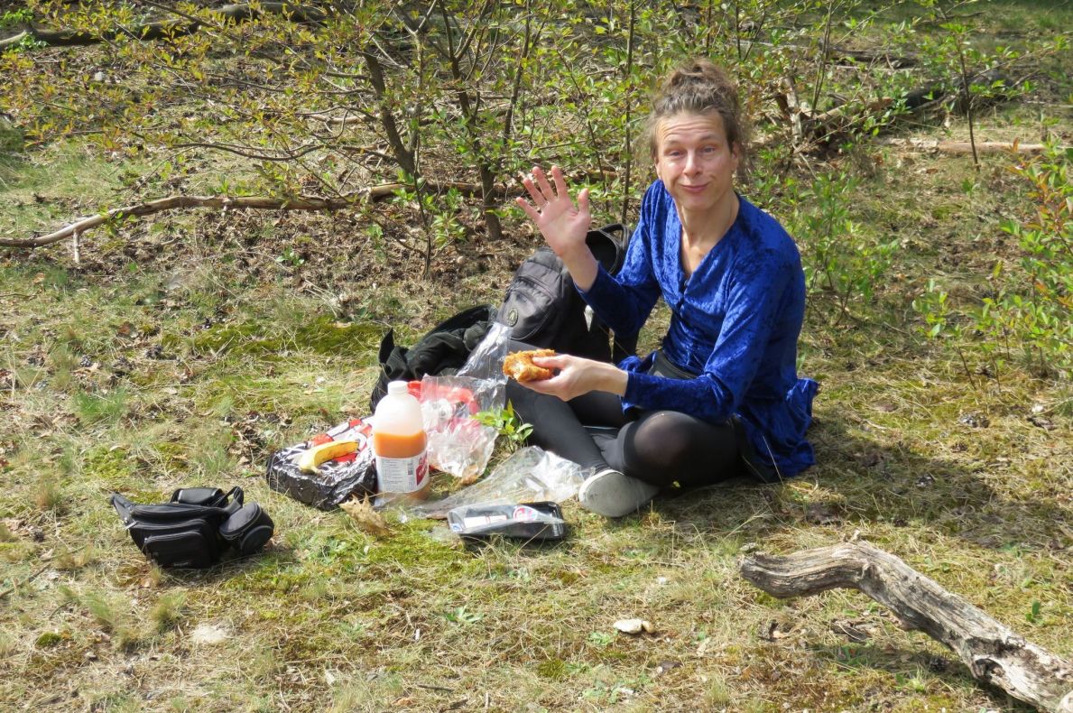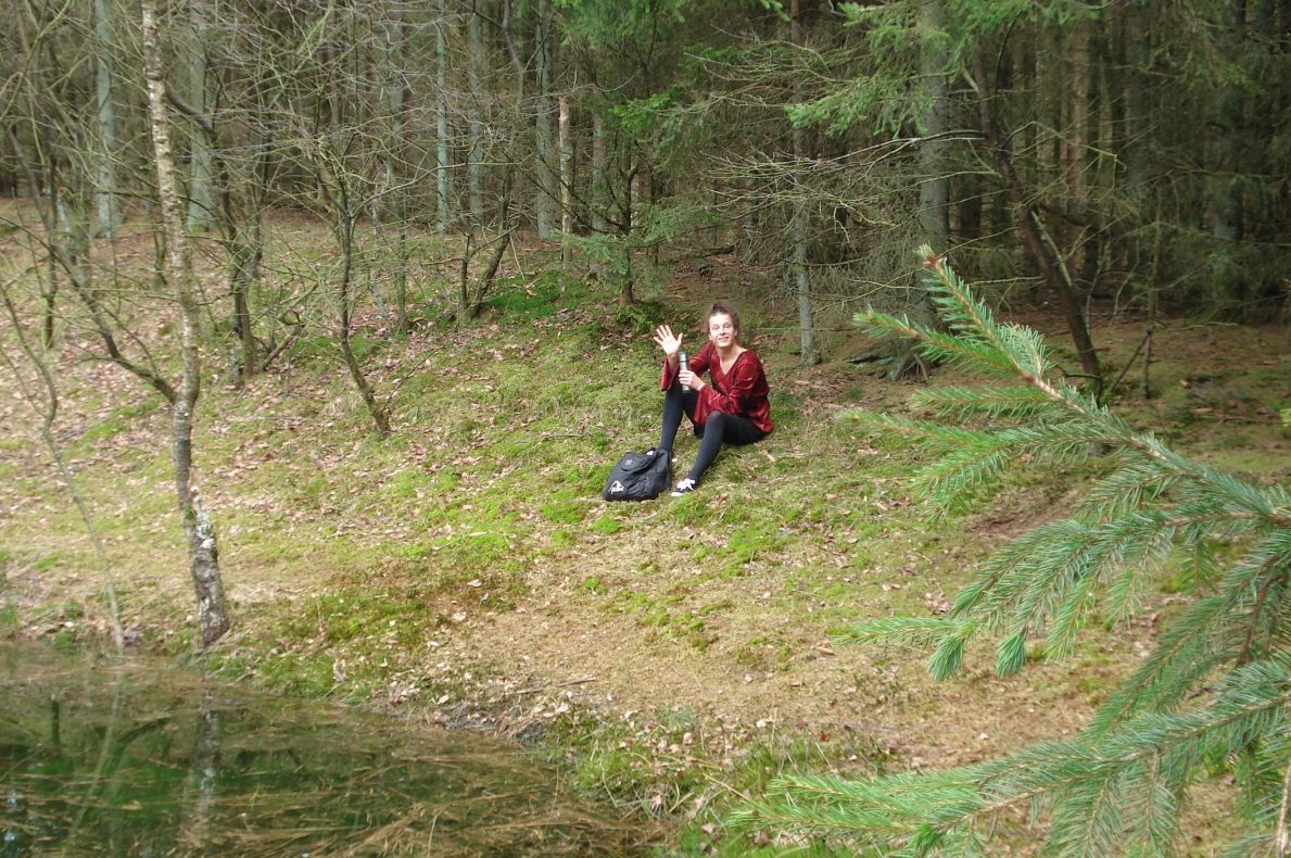 Uiteraard ook struinend door het dichte kreupelhout ("want dat is leuk!") en zo vond ze ooit een vennetje, voor iedereen verborgen - een heerlijke plek om even te vertoeven met een 'bammetje' en een 'klopje koffie'.