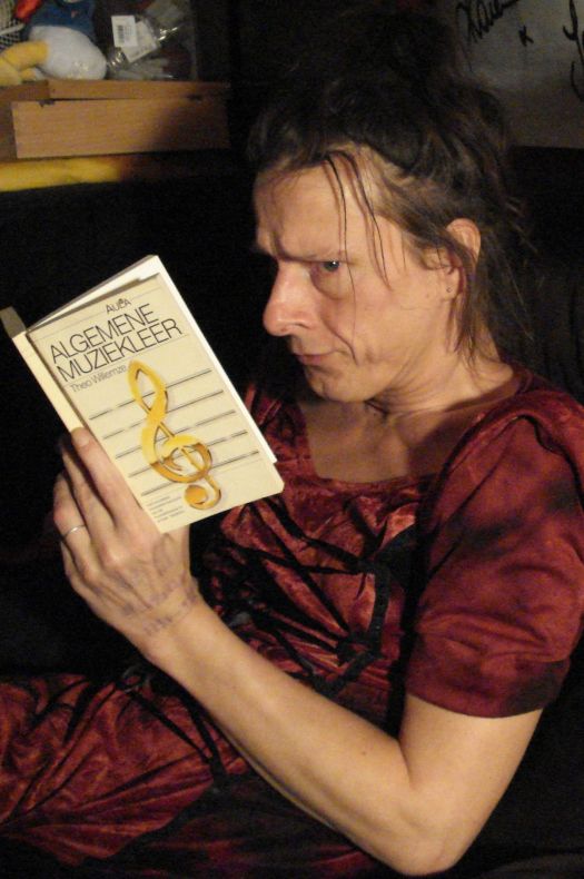 Ondanks dat ze een kneitergoed muzikaal gehoor had - structuren, melodieën, akkoorden, ritmes op gehoor kon ontleden en duiden - vond ze het onnodig om zich de officiële muziektaal eigen te maken en bediende ze zich ook hier met haar typisch Hooglandies jargon (het 'Lesbies') als 'pikkepokke' om ghost notes op de snare trom te duiden of 'tegespartel' voor syncopen, of een noot een 'bes' noemen terwijl het toch echt een 'ais' moet zijn om maar wat te noemen.