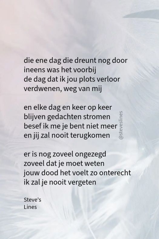 Vandaag weer de dag dat ik je moest laten gaan 20 jaar als de dag van gister alles weet ik nog. Ik mis je Lieve Nick voor altijd in mijn Hart.