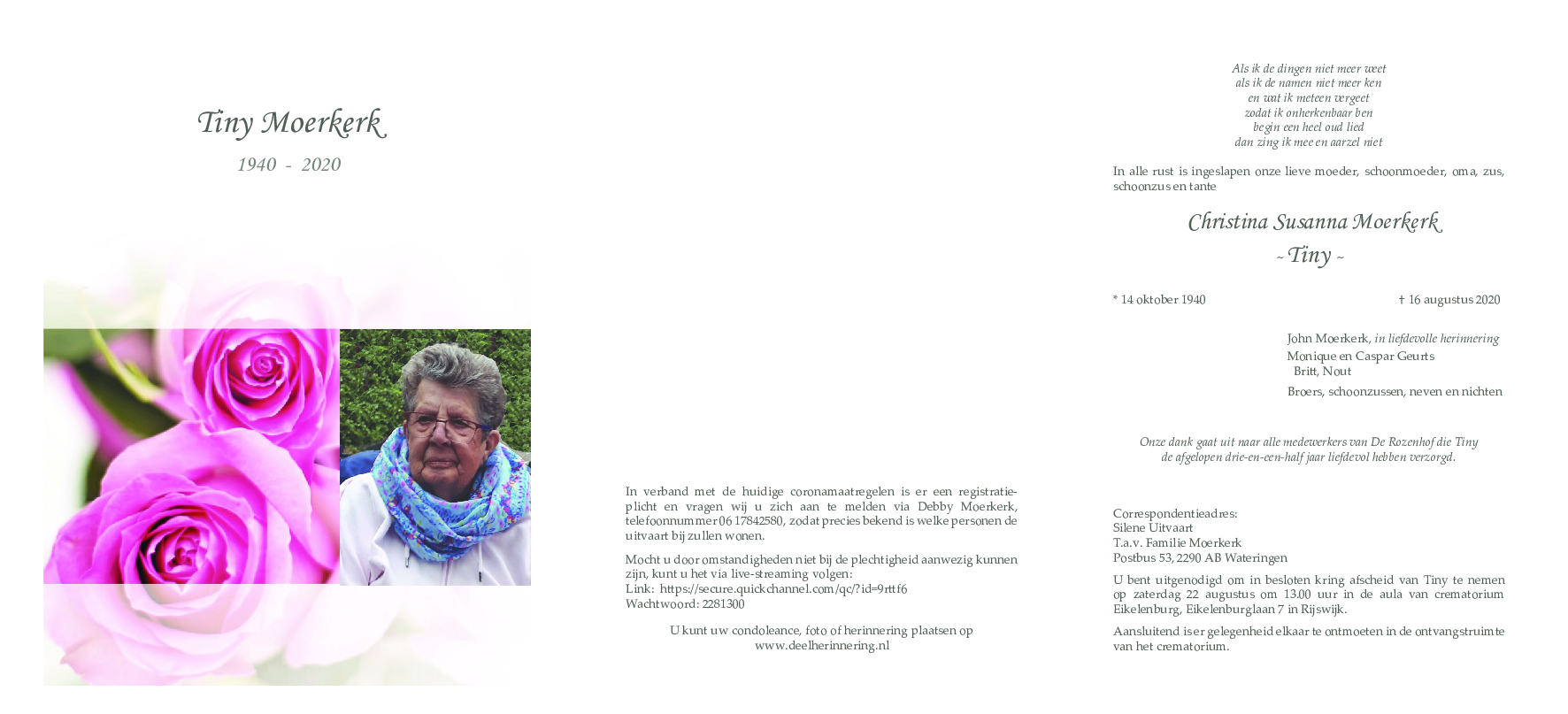 Bekijk of download de rouwkaart van Tiny Moerkerk.