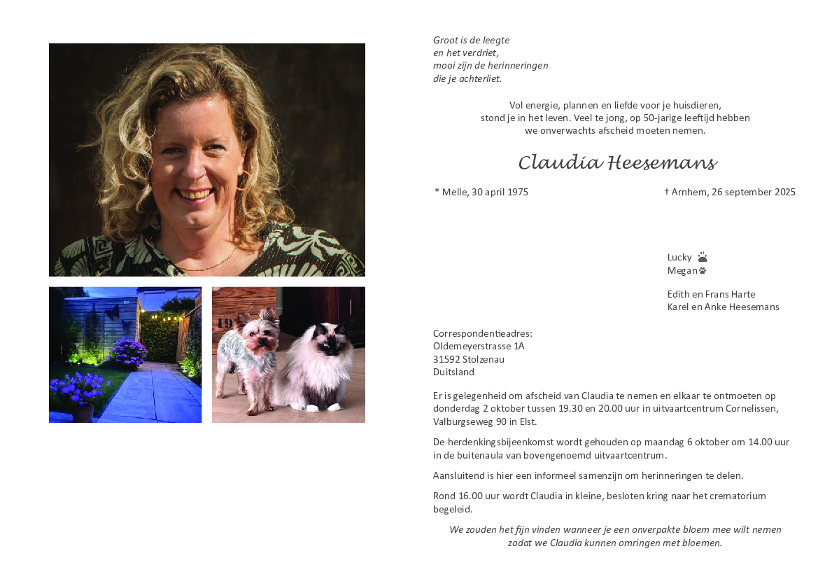 Bekijk of download de rouwkaart van Claudia Heesemans.