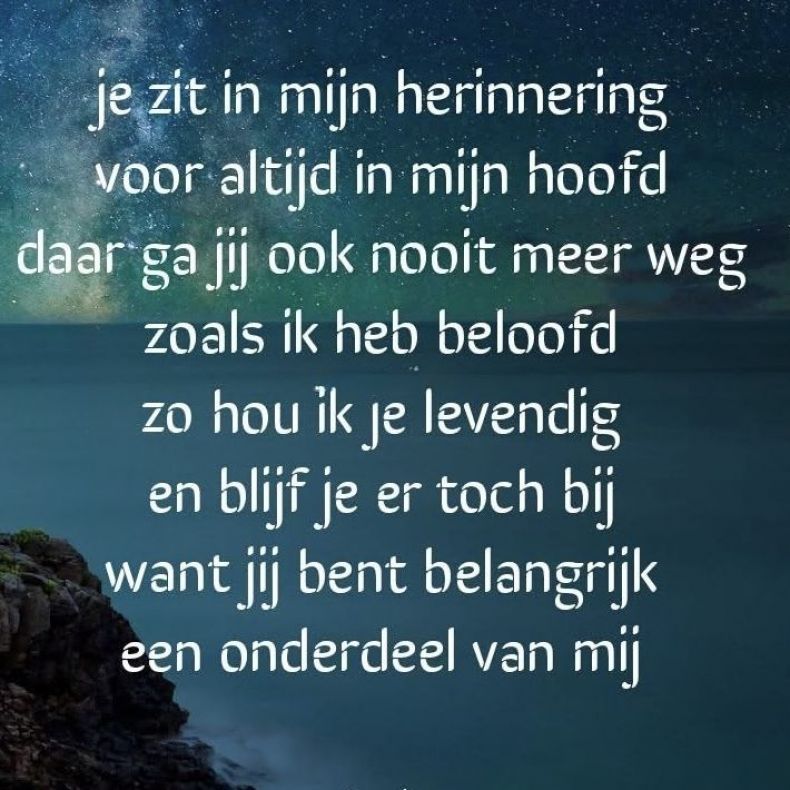 Plaats een reactieDe mooiste herinneringen zijn vaak eenvoudige momenten waar je het eerst aan denkt. Condoleances zijn vaak de woorden die als eerste in je opkomen om verdriet te delen.