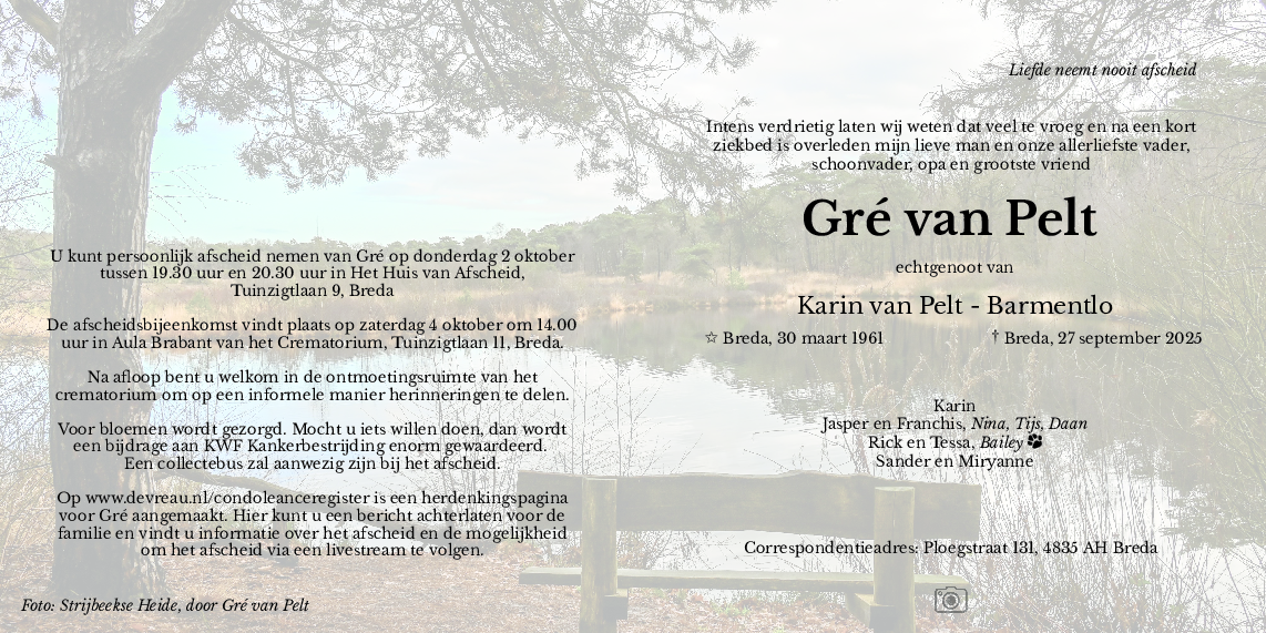 Bekijk of download de rouwkaart van Gré van Pelt.