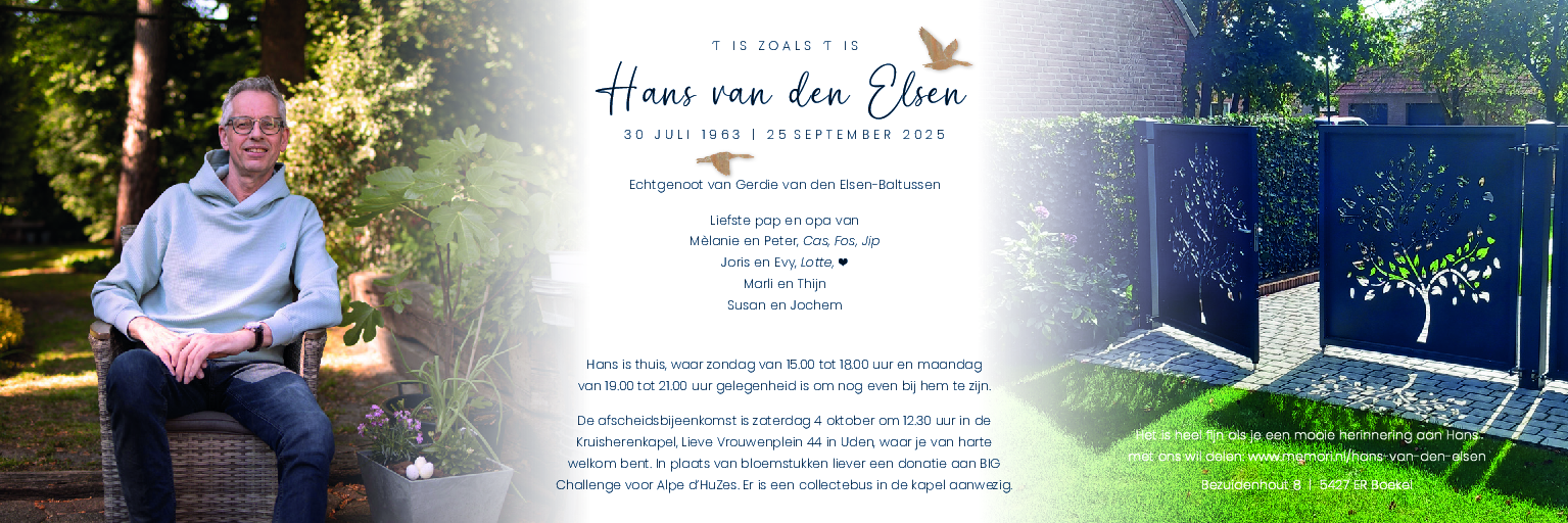 Bekijk of download de rouwkaart van Hans van den Elsen.