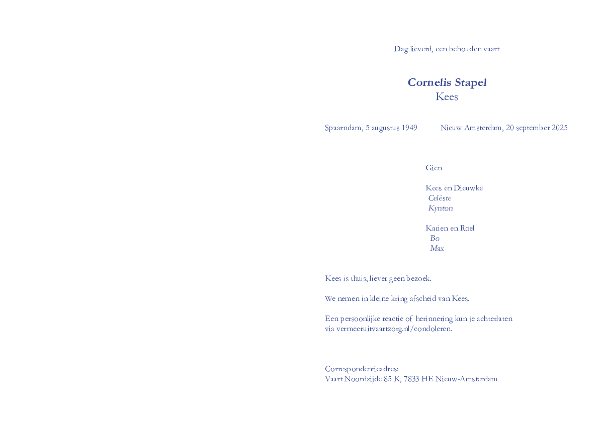 Bekijk of download de rouwkaart van Kees Stapel.