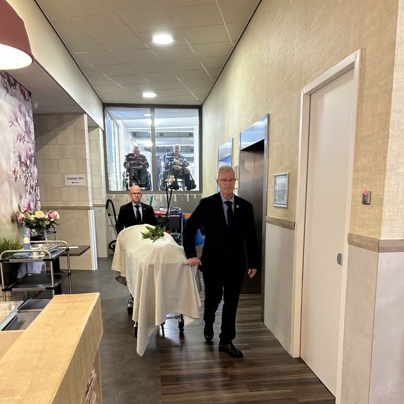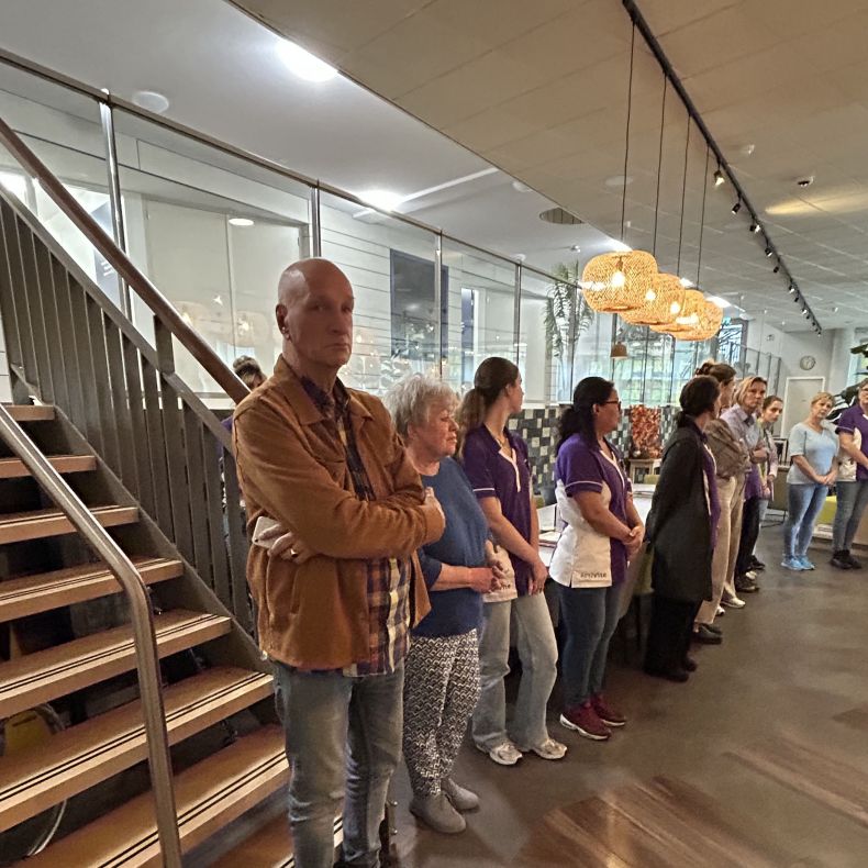 Dit was zo’n ontroerend moment. Mirjam werd -heel respectvol- uitgeleide gedaan door het personeel van Rijnzate. We waren er alledrie van onder de indruk, en willen de mensen van Rijnzate hiervoor bedanken.