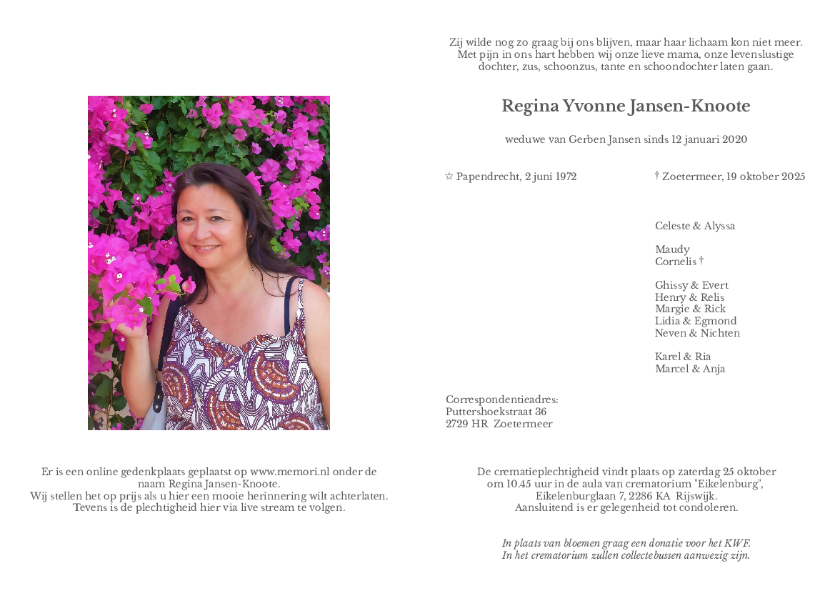 Bekijk of download de rouwkaart van Regina Jansen-Knoote.
